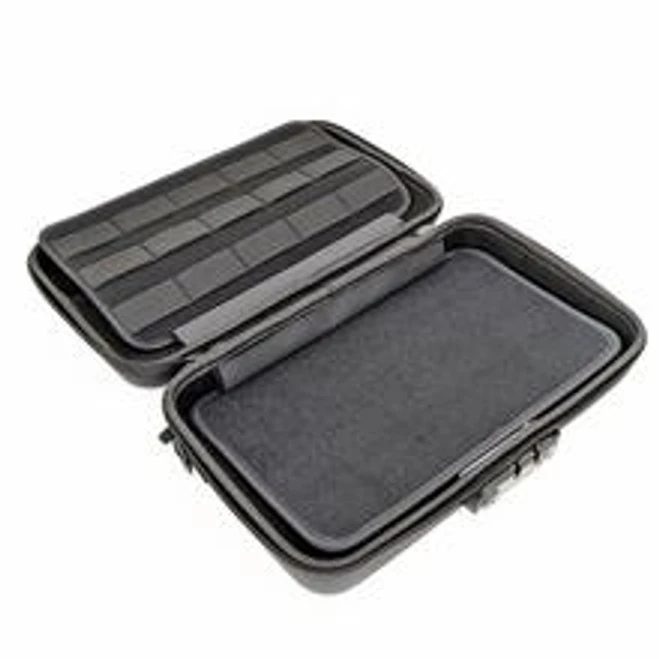Inside the 11″ X 6.5″ case, you’ll find a system of velcro flex panels you can use to store your items securely.