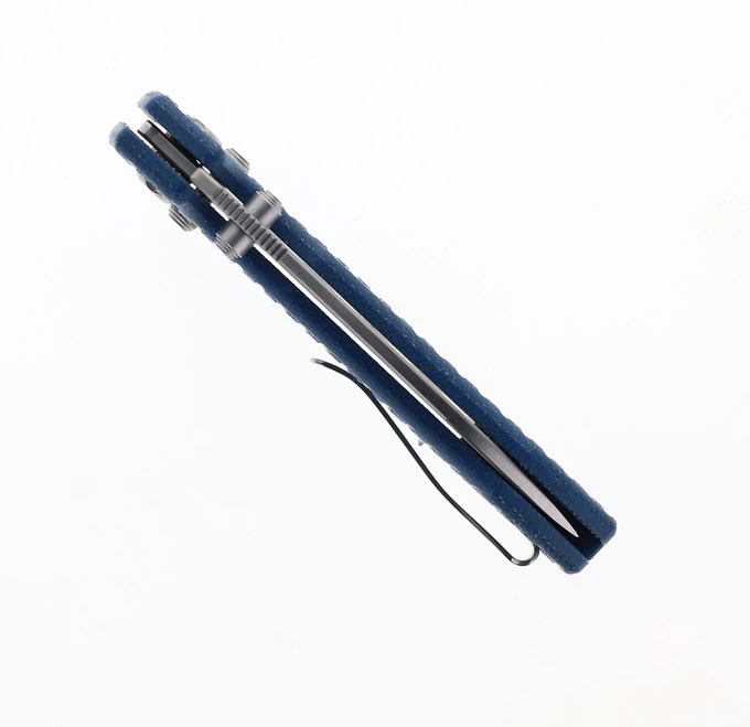 WMK Exclusive Vosteed Raccoon Crossbar Lock Folding Knife Blue Micarta Frag Handle 14C28N Plain Edge Satin Finish RCCWM2